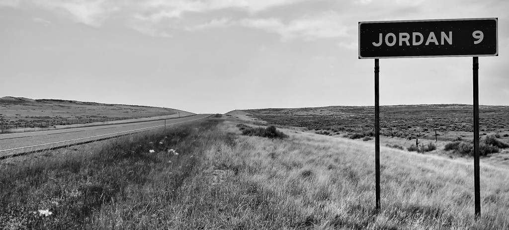As I turned into the bend, I felt the wind shift behind me as I began a slight downhill that looked like it was the final stretch into Jordan. I could not see the town, but it had to be close.